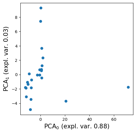 ax.set_xlabel('PCA$_0$ (expl. var. {:.2f})'.format(reducer.explained_variance_ratio_[0]), fontsize=15)